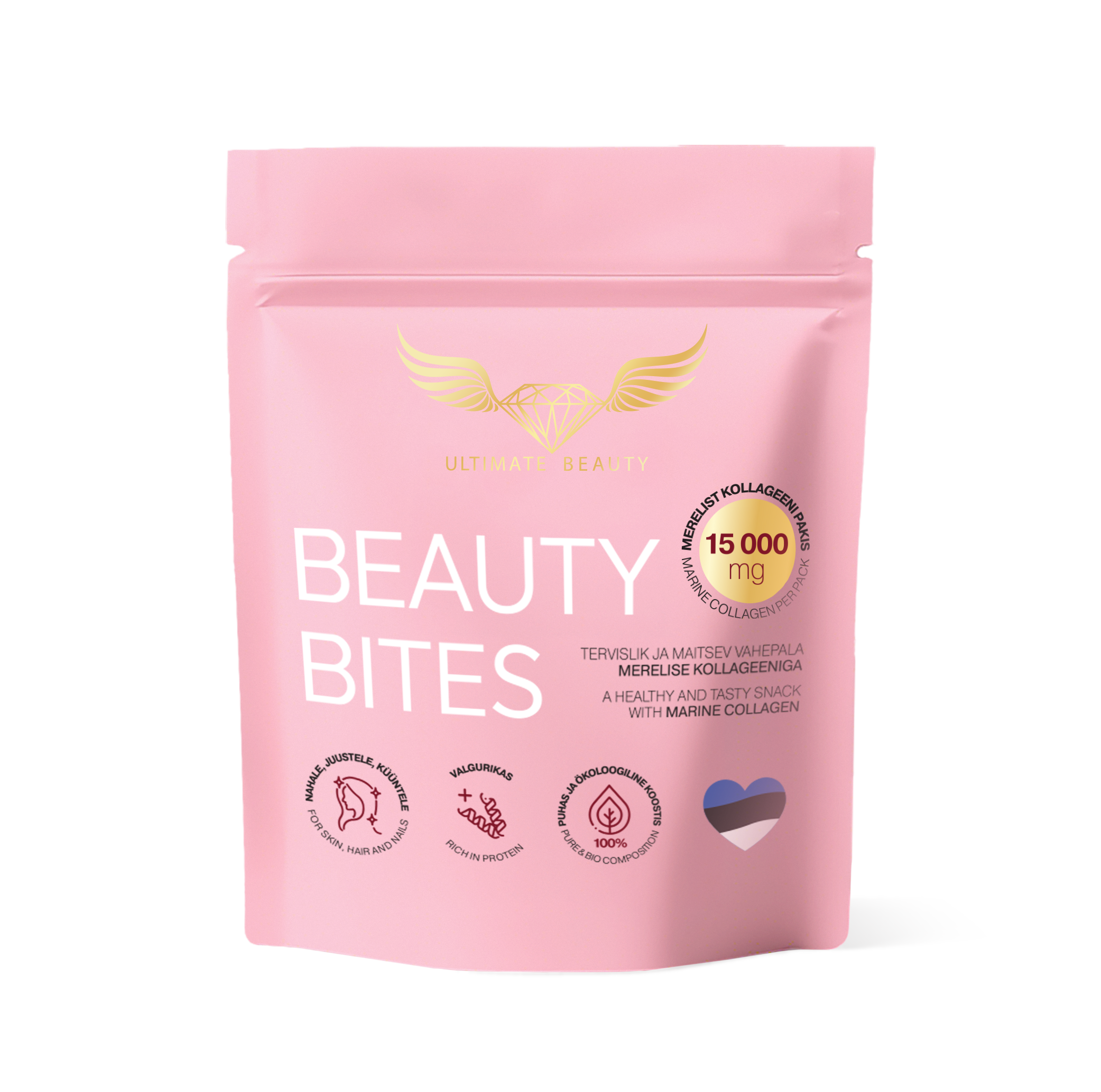 Mereline kollageen on looduslikult esinev valk, mis on oluline naha tervise ja elastsuse säilitamiseks. See on saadud kalast ning sisaldab suures koguses kollageeni ja teisi olulisi toitaineid, mis aitavad nahka niisutada ja vananemisilminguid vähendada, toetada nooremat väljanägemist ja tervet nahka.Beauty Bites pakk sisaldab 15 000 mg merelist kollageeni.