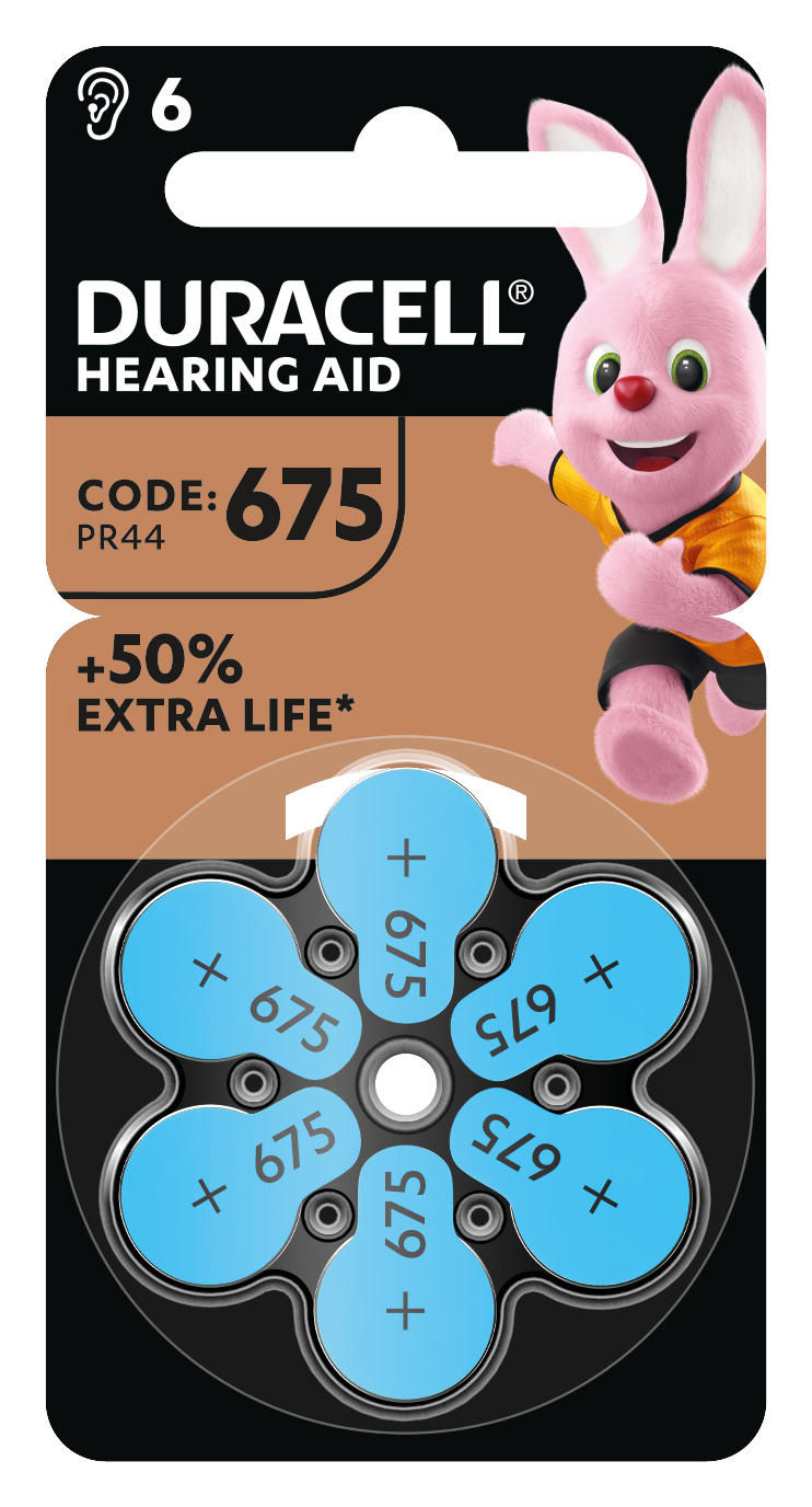 DURACELL kuuldeaparaadi patarei, suurus 675 – kauakestev elavhõbedavaba patarei.