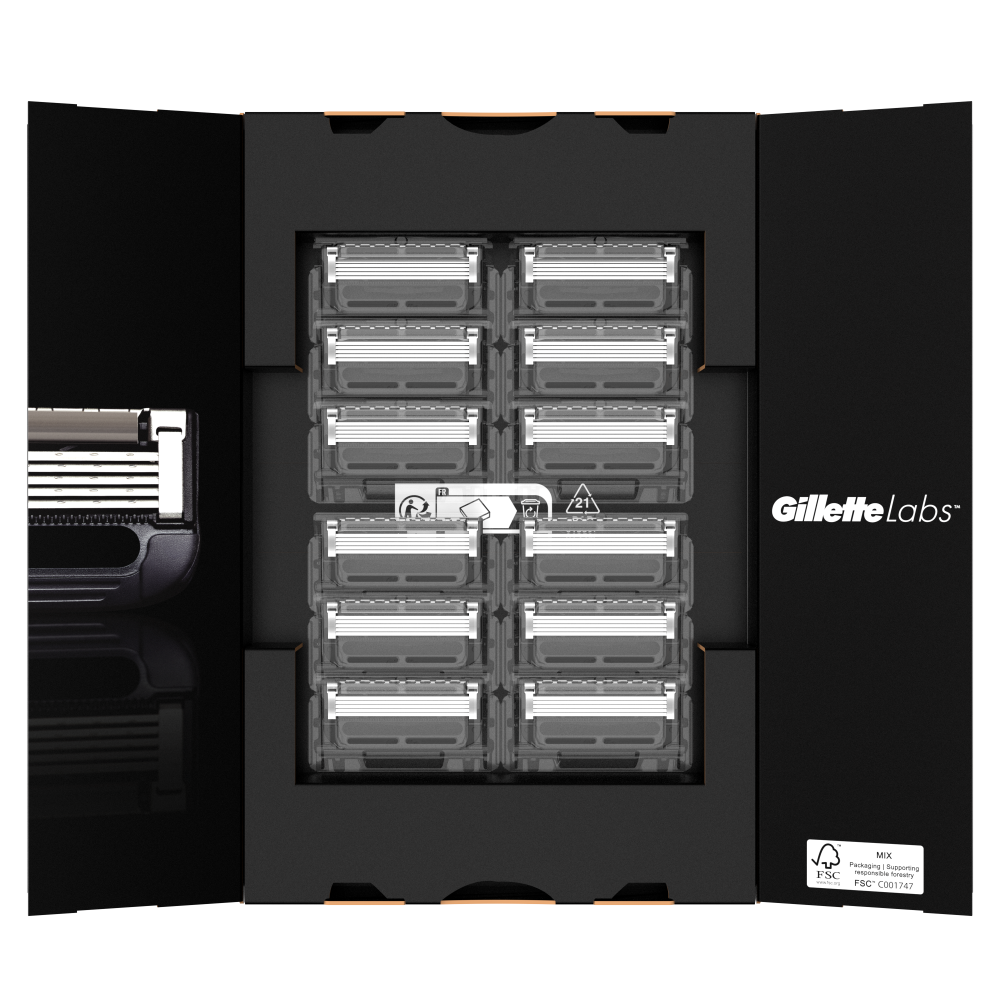 Gillette Labs universaalset varuterade kassetti saab kasutada kõigi GilletteLabsi raseerijatega, sealhulgas GilletteLabsi koorimisriba ja GilletteLabsi soojendusega raseerijaga. Uuenduslikul raseerija varukassetil on viis Gillette’i parimat tera ja keskel ava, kuhu saab kerge klõpsuga paigaldada soojendusriba ja koorimisriba. Universaalne varukassett muudab terade vahetuse lihtsaks, olenemata sellest, millist GilletteLabsi raseerijat eelistad, ja tagab Gillette’i parima raseerimistulemuse.