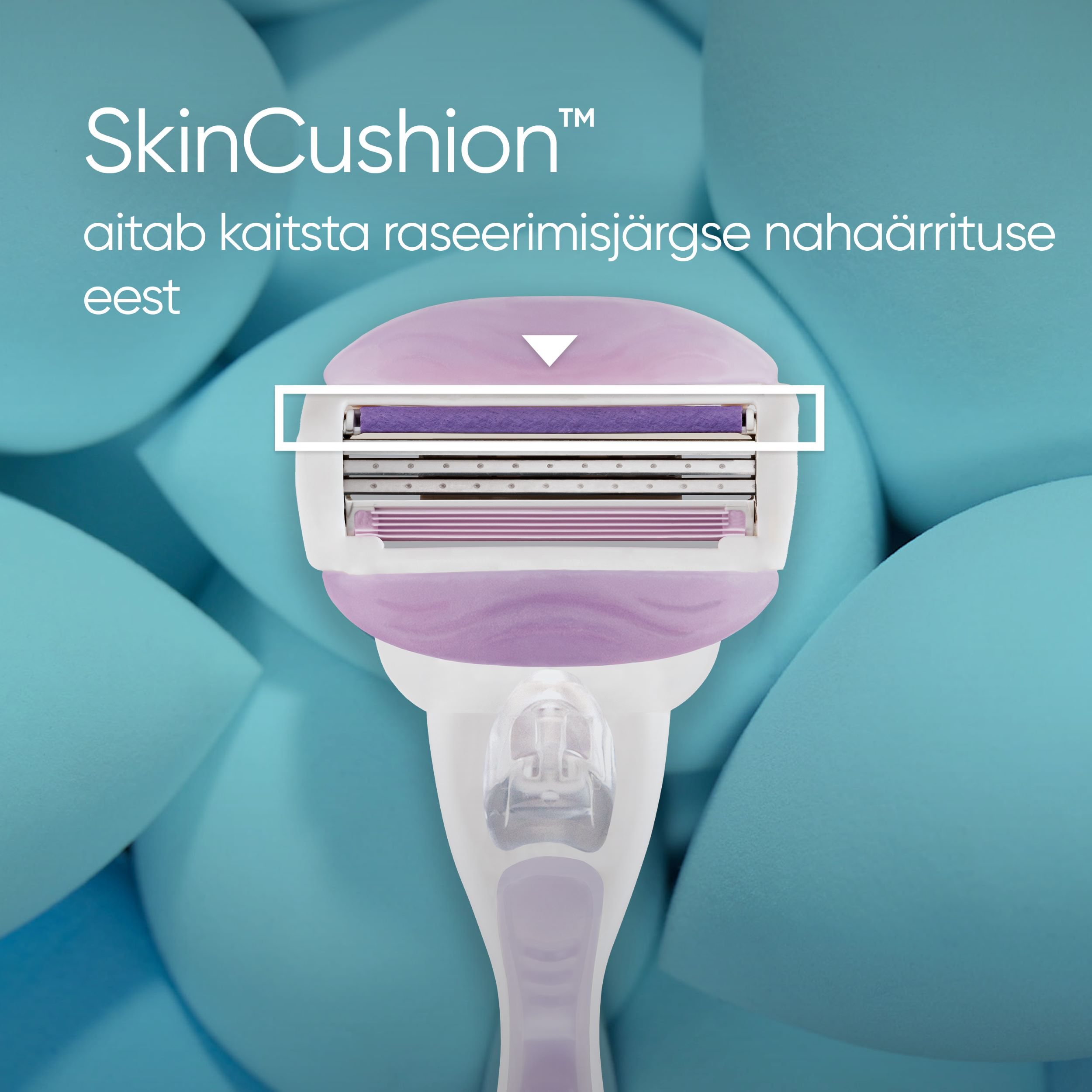 Hellitage oma nahka Venus ComfortGlide Breeze’i naiste raseerija teradega. 3 kontuure järgivat tera ja lisatud seebiribad, millest eraldub luksuslikku freesialõhnalist kehavõiet, tagavad uskumatu libisevuse, mugavuse ja unustamatu raseerimiskogemuse.
