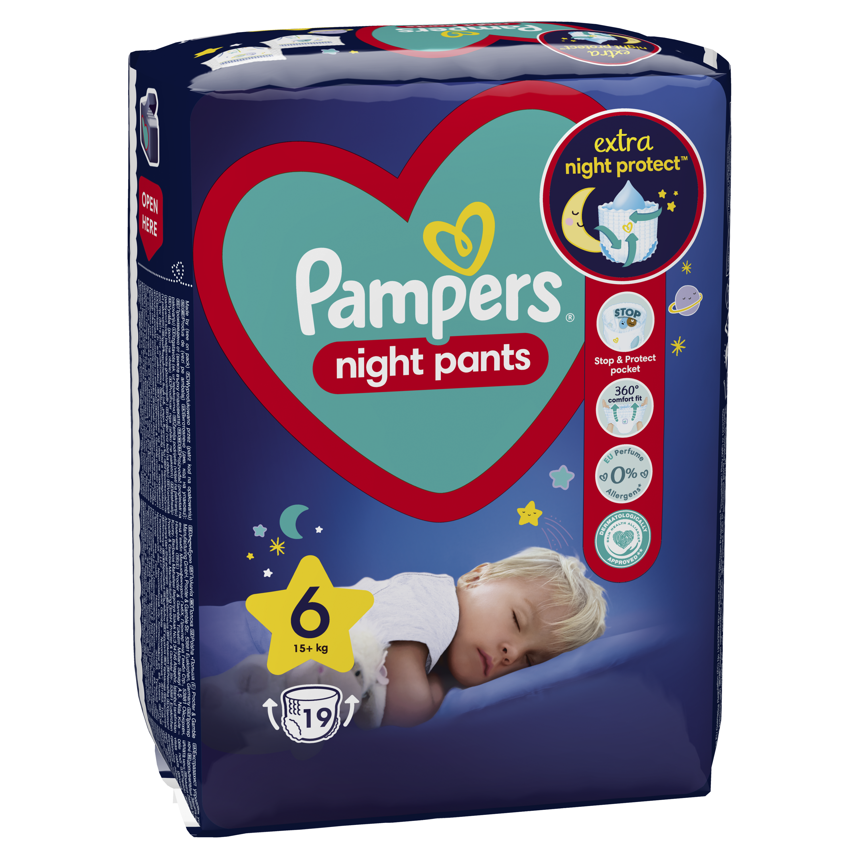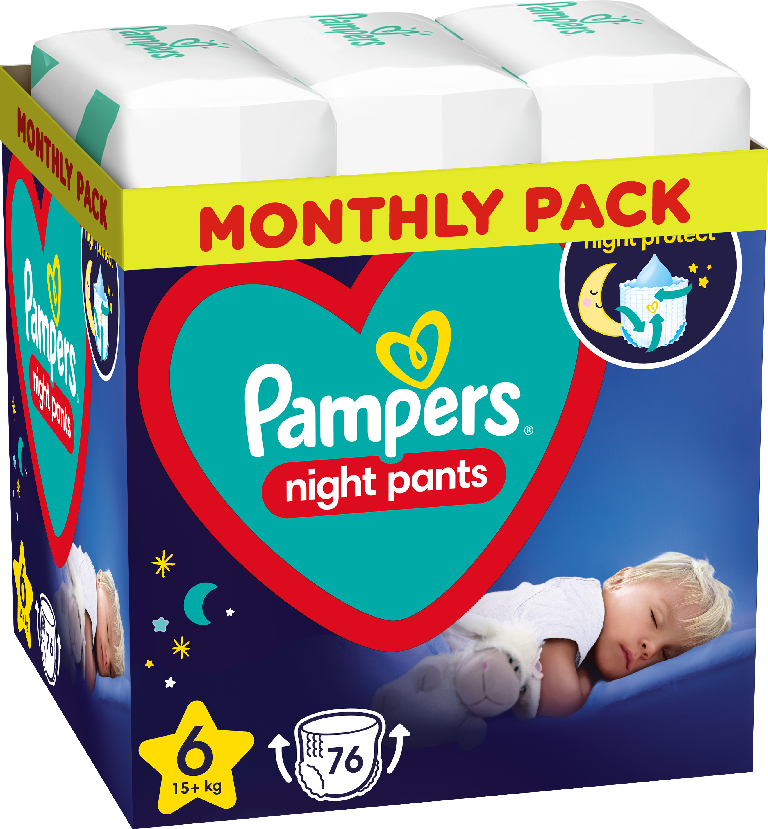 Pampers Night Pants pakub kuni 12-tunnist kogu ulatuses lekkekaitset, et öö mööduks rahulikult. Püksmähkmetel on nüüd uuenduslik Stop & Protect Pocket, mis ei lase seljalt lekkida, ja täiustatud sisekiht, mis imab niiskuse kohe sisse, et laps oleks öösel veelgi paremini kaitstud.